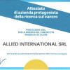 The AIRC Foundation has awarded the company the certificate of "Corporate Champion of Cancer Research" in recognition of the long-standing support that Allied has provided to oncological research initiatives.
